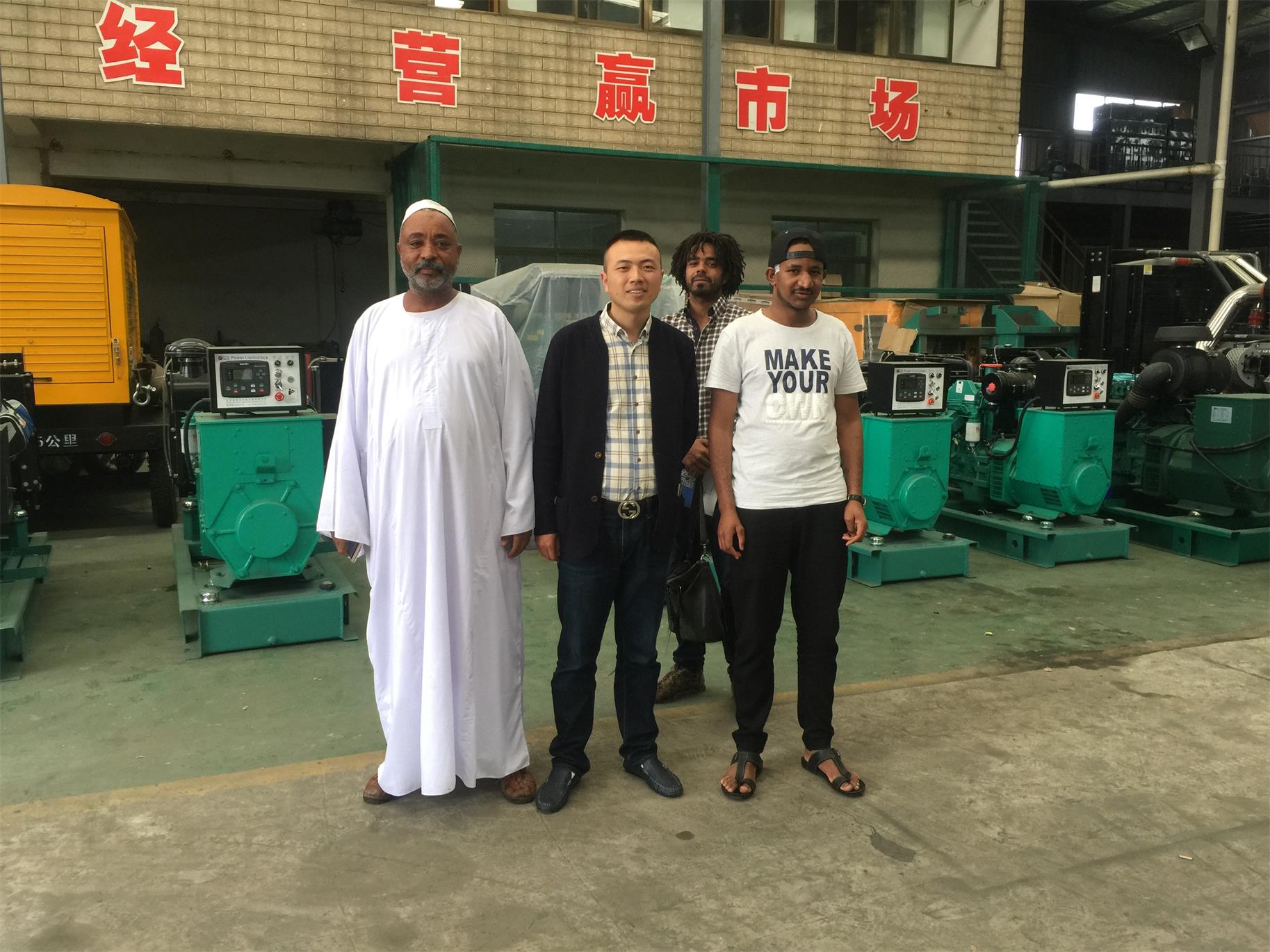 這兩天天氣突然降溫,但是阻擋不了外國客戶考察工廠的熱情,今天蘇丹客戶到廠考察洽談柴油發電機組,經過與客戶的技術交流,各合作方案,以及產品做工,都得到客戶的認可,當場訂購帕金斯柴油發電機280kw1臺,200kw2臺,100kw1臺,并簽訂長期合作合同,我們一直本著誠信二字對待客戶,也贏得國內外客戶的好評!